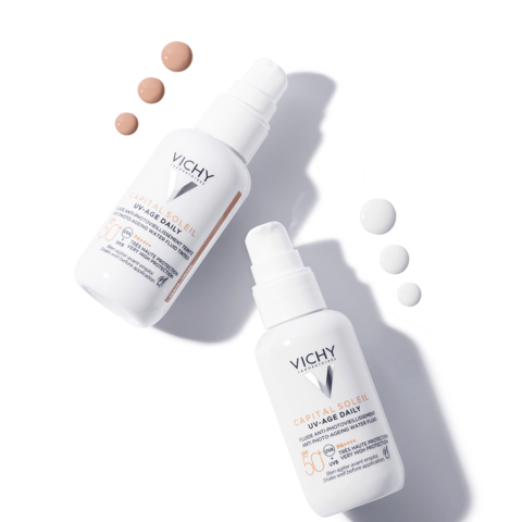 الحل الأمثل للتخلص من علامات تقدم العمر في منتج واحد للحماية اليومية من أضرار أشعة الشمس ، حماية قصوى من البقع الصبغية الناتجة عن الشمس (الحساسية من الضوء, التلوث و الأكسدة و العوادم). حماية عالية من الأشعة UVA/UVB فوق البنفسجية ذات الموجات الطويلة والمتوسطة البتسبب حروق الجلد. الحل الأمثل للتخلص من علامات تقدم العمر و التجاعيد و البقع الداكنة ، ملمس مائي خفيف امتصاص سريع لا يترك بقع بيضاء لا يسبب للحساسية غير دهني ، الابتكار الجديد من فيشي للحماية اليومية من اضرار اشعة الشمس و لعلاج ظهور التجاعيد و البقع الداكنة بملمس شفاف و غير دهني ذات امتصاص سريع لا يترك بقع بيضاء ، فاعلية مثبتة من قبل أطباء الجلدية