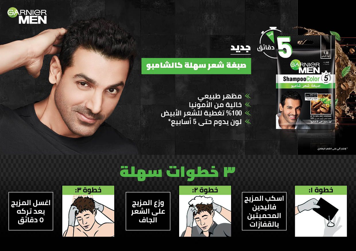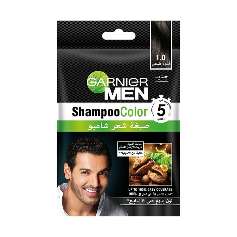 غارنييه من صبغة شعر شامبو 1.0 أسود طبيعي هي صبغة شعر للرجال سهلة التطبيق مثل الشامبو خلال 5 دقائق فقط! لون طبيعي من خلاصة القهوة وزيت الأرغان المغذي خالية من الأمونيا تدوم لمدة 5 أسابيع.