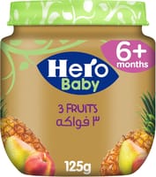 {"_id":"5f310afabb10a4263f7caed0","name":"Hero Baby Jar, 3 Fruits, 125g","description":"Super Tasty fruit & vegetable purees with superior ingredients\n\nSafe & 100% natural.\nNo Preservatives.\nRich in Fibers and vitamin C.\nVacuum sealed so the ''Pop'' sound on opening guarantees the Jar's safety.\nA complete healthy & nutritious meal.\nThe easiest and quickest healthy solution for mothers.\nEasily packed, prepared and used","price":11.5,"substore":["kunooz","whites","store-whites","store-kunooz"],"sku":"13041","publish":"1","inventory_management":"automatic","inventory_management_level":"product","inventory_quantity":0,"approve":"approved","seller":"5e5ba36356297b5dd7d7df93","uniquesku":["13041"],"attributes":[{"name":"_brand","value":"HERO BABY","_id":"68dcd37728e1b71ade6b526e"}],"available":false,"images":[{"image":"6833fbe4241787003e96bc7e/8690504550570.jpeg","caption":"","tags":""}],"media":[],"dimension":{},"options":[],"SEO":{},"files":[],"google_shopping":{},"metafields":{"how_to_use":"Spoon out the appropriate amount into a small bowl, or use directly from the jar (if feeding immediately).\nAlways ensure that the food is at a safe temperature for your baby before feeding.","gtin_1":"8690504550570"},"variants":[],"alias":"3-fruits-baby-food","sort_order":1500,"created_on":"2020-08-10T08:53:14.980Z","default_variant":null,"updated_on":"2025-10-01T07:08:39.467Z","collections":["non-medicine-no-offer"],"tax":"5e7afbf58c3a1a400643f7c3","categories":["mom-and-baby","feeding-and-nursing","baby-food"],"_updated_by":"647ca77ccd69b4dec86358d8","kunooz_sort_order":2000000100,"whites_sort_order":2000000100,"compare_price_discount":0,"gtin":"8690504550570","unique_barcodes":[],"brand":"HERO BABY","compare_price_discount_pct":0,"_size":501,"Supplier":"Tan Gulf Trading CO.","Supplier code":"11000497","last_order_date":"2025-08-09T12:33:09.619Z","last_order_id":"OID347460","total_order_count":2,"total_sales_amount":19.56,"Inventory":"0","list_price":11.5,"our_price":11.5,"original_price":11.5,"discounts_total":0,"discounts_percentage":"0.000","discount_total":0,"original_sort_order":2000001500,"entity_type":"ms.products","approved_prescription":"unapproved","featured_image":{"image":"6833fbe4241787003e96bc7e/8690504550570.jpeg","caption":"","tags":""},"selected_options":{},"selected_variant":{},"category":{"_id":"5e7388fdf1087b20afaa3da6","name":"Mom & Baby","alias":"mom-and-baby","publish":"1","parent":null,"images":[{"image":"ms.categories/5e7388fdf1087b20afaa3da6/5e8c5a871fab5192465fd6f4.png","_metadata":{"image":{"name":"Category-Banners-mother&baby.png","type":"image/png","size":443807,"_id":"5e8c5a871fab5192465fd6f4"}},"_id":"5e8c5a9b6749772a3385af17"},{"image":"ms.categories/5e7388fdf1087b20afaa3da6/5e90534fc17dc24214444222.png","_metadata":{"image":{"name":"Category-Banners-mother&baby-ar.png","type":"image/png","size":444309,"_id":"5e90534fc17dc24214444222"}},"_id":"5e905367c17dc242144443c0"}],"SEO":{"sitemap_frequency":"","title":"تسوق جميع مستلزمات الأم والطفل في الرياض","description":"اطلب مستلزمات الأم والطفل (أغذية الأطفال، أساسيات الاستحمام، الحفاظات..) أونلاين من صيدلياتالرياض. ✅ توصيل 24 ساعة ✅ توصيل مجانيل."},"default_sort_order":"","metafields":{"EN":"60214bad1c85af556fe11571/baby.jpg","AR":"60214ba9dd51eb55691e687f/baby.jpg","_metadata":{"EN":{"name":"baby.jpg","type":"image/jpeg","size":8221,"_id":"60214bad1c85af556fe11571"},"AR":{"name":"baby.jpg","type":"image/jpeg","size":8221,"_id":"60214ba9dd51eb55691e687f"},"Whites_EN":{"name":"Dropdrown-Menu-Banners-mother&baby.png","type":"image/png","size":89303,"_id":"5e9443b49195f5cd07f935de"},"Whites_AR":{"name":"Dropdrown-Menu-Banners-mother&baby.png","type":"image/png","size":89303,"_id":"5e9443ab9195f5cd07f934ff"}},"Whites_AR":"ms.categories/5e7388fdf1087b20afaa3da6/5e9443ab9195f5cd07f934ff.png","Whites_EN":"ms.categories/5e7388fdf1087b20afaa3da6/5e9443b49195f5cd07f935de.png","whites":{"AR":"646b191c1b9e2643b46035bf/lamding-page-banners.jpg","EN":"646b192173cb788c7b0a9799/lamding-page-banners.jpg","_metadata":{"AR":{"name":"Lamding page banners.jpg","type":"image/jpeg","size":600809,"_id":"646b191c1b9e2643b46035bf"},"EN":{"name":"Lamding page banners.jpg","type":"image/jpeg","size":600809,"_id":"646b192173cb788c7b0a9799"}}},"kunooz":{"AR":"618b7fc973f0897ac886ac07/mom-_-baby.jpg","EN":"618b7fbd6cb92c5e71892168/mom-_-baby-_-en.jpg","_metadata":{"EN":{"name":"Mom _ baby _ En.jpg","type":"image/jpeg","size":925193,"_id":"618b7fbd6cb92c5e71892168"},"AR":{"name":"Mom _ baby .jpg","type":"image/jpeg","size":868977,"_id":"618b7fc973f0897ac886ac07"}}},"whites-offers":{},"category_top_brands":[],"mobile_icon":"<svg class=\"svg-icon-mombayCat\"><use xlink:href=\"#mombayCat-svg-icon\"></use></svg>","top_picks":"1","kunooz_app":{"EN":"601fa0301700654e954ef1f2/artboard-2-copy-7.png","AR":"601fa03d59720d4ee7c3abc4/artboard-2-copy-6.png","_metadata":{"AR":{"name":"Artboard 2 copy 6.png","type":"image/png","size":1187181,"_id":"601fa03d59720d4ee7c3abc4"},"EN":{"name":"Artboard 2 copy 7.png","type":"image/png","size":1196123,"_id":"601fa0301700654e954ef1f2"}}},"kunooz_top_picks_image":{"EN":"6028cdee7f321862b96baebd/baby.jpg","AR":"6028cdfa90909962561fe3fc/baby.jpg","_metadata":{"AR":{"name":"baby.jpg","type":"image/jpeg","size":8221,"_id":"6028cdfa90909962561fe3fc"},"EN":{"name":"baby.jpg","type":"image/jpeg","size":8221,"_id":"6028cdee7f321862b96baebd"}}},"kunooz_app_subcategory_banner":{},"whites_app":{"EN":"6188d84497f7595e34823d21/artboard-1-copy-15.png","AR":"6188d85597f7595e34823ee7/artboard-1-copy-20.png","_metadata":{"EN":{"name":"Artboard 1 copy 15.png","type":"image/png","size":119842,"_id":"6188d84497f7595e34823d21"},"AR":{"name":"Artboard 1 copy 20.png","type":"image/png","size":120412,"_id":"6188d85597f7595e34823ee7"},"round_img":{"name":"Mom & Baby - 1.png","type":"image/png","size":64690