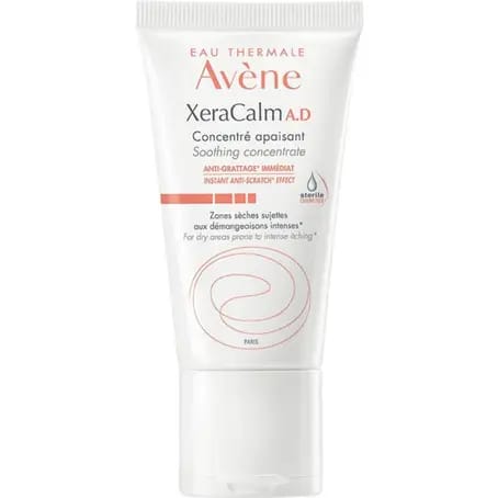 Avene Xeracalm A.D Concentrate is a targeted skincare product designed to provide intense relief for dry, itchy, and eczema-prone skin. This concentrate is enriched with a unique combination of ingredients that work together to soothe and nourish the skin, restoring comfort and reducing inflammation. It is specifically formulated for those with atopic dermatitis or eczema.