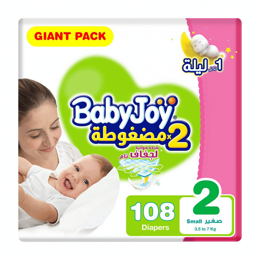 Babyjoy Compressed Diapers, Size 2 108Pc