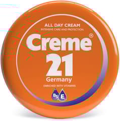 64573a129d5b64aae73255edCreme 21, Classic, All Day Cream, With Pro-Vitamin B5 - 250 Mlhttps://kunooz-mobile.mobitual.com/s/5e5b8eb5e1a30016118f588f/64573b0c4b8651aa8bf25a32/32117.jpgDescription Creme 21 All Day Cream is well known for its highly efficient rich formula with Vitamin E for all skin types, to restore the skin’s natural moisture and protect it from dehydration, all day long. Benefits All-day intensive miniaturization Moisturizing cream enriched with Vitamin E deeply moisturizes and soothes dry flaky skin. With Fast Absorption formula Non Sticky rich feel Instructions For Use/ How To Use Step 1: Scoop the cream. Step 2: Rub it on your palms to spread evenly. Step 3: Gently massage all over your face and body. Step 4: Use daily for soft and moisturize skin32117