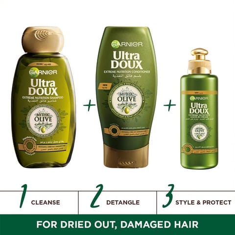 5faa8751e47f7a3caa55e5c7Ultra Doux Mythic Olive Shampoo, 200 mlhttps://kunooz-mobile.mobitual.com/s/5e5b8eb5e1a30016118f588f/61dac480dc9ac16855a4391f/29019.jpgGarnier Ultra Doux Mythic Olive Shampoo is composed of an extremely nutritious recipe for profoundly dried out, damaged hair. We selected mythical oil of thousand benefits: virgin olive oil. Coming from the fruit of an ancient tree, this powerful elixir is the gold of life. Rich in fatty acid and in antioxidant vitamin E, it is used since antiquity for its highly nutritive, softening and repairing values.29019